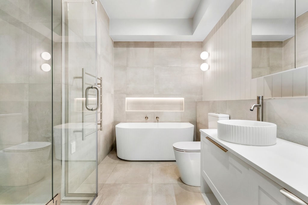 On the lower level, two additional bedrooms share a beautifully appointed family bathroom, each opening to a private, freehold garden and lawn. Step through your gate and wander directly into the reserve beyond. Directly north-facing and drenched in natural light, this residence embodies calm, space, and refined design.